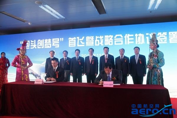 自治区党委常委、包头市市委书记王中和、中国东方航空公司副总经理冯亮,中国联合航空公司总裁宋志平、副总裁吴刚,市领导杜学军、李淳仁、白志强、路智、周志宁出席“包头创梦号”首飞暨战略合作协议签署仪式,市政府秘书长郭甫欣主持签约仪式。