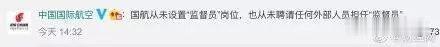 对此,国航方面回应新京报记者称,牛某某并非“监督员”,国航目前没有设置监督员这个岗位。国航官方微博也在评论中回复称“国航从未设置‘监督员’岗位,也从未聘请外部人员担任‘监督员’。”但这一内容随后被删除。