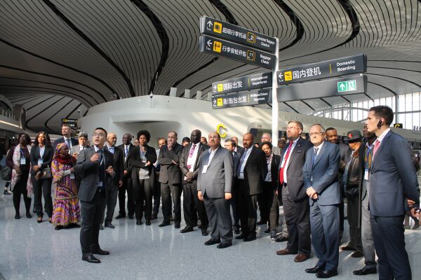 大兴机场航站楼是全球最大规模的单体航站楼,在造型设计、施工工艺及科技应用等方面位居世界领先地位。使节和代表们参观了机场航站楼和要客服务区,详细了解航站楼规划设计理念、建筑特点及各类设施及功能,亲身体验国际旅客出入境全流程,并现场感受无人值机、自助查验证件及自助采集生物特征系统等新兴智能科技成果给旅客带来的出行便利。