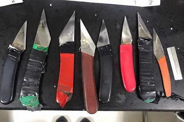 “根据多年的工作经验和异常行为识别,我们判定同行旅客可能涉嫌藏匿金属违禁品,于是立即启动应急预案,确定查控人员,依次对旅客进行严格的人身和脱鞋复查。”杭州萧山国际机场安检部门工作人员的直觉异常灵敏。最终,安检员从5名旅客身上查获共藏匿8把刃长5厘米左右的自制刀具和一片刮眉刀片,刀身刀刃均由黑色绝缘胶布包裹,藏匿位置在鞋垫和鞋底之间,十分隐蔽。