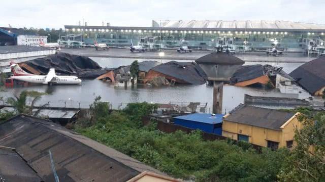 而更让人无法相信的是,就在机场一角的印度航空公司区域,大片机库居然被倾盆大雨压垮了!机库中停放的飞机全部受损,最严重的是一架注册号为VT-RPG的比奇400飞机,彻底被砸毁。