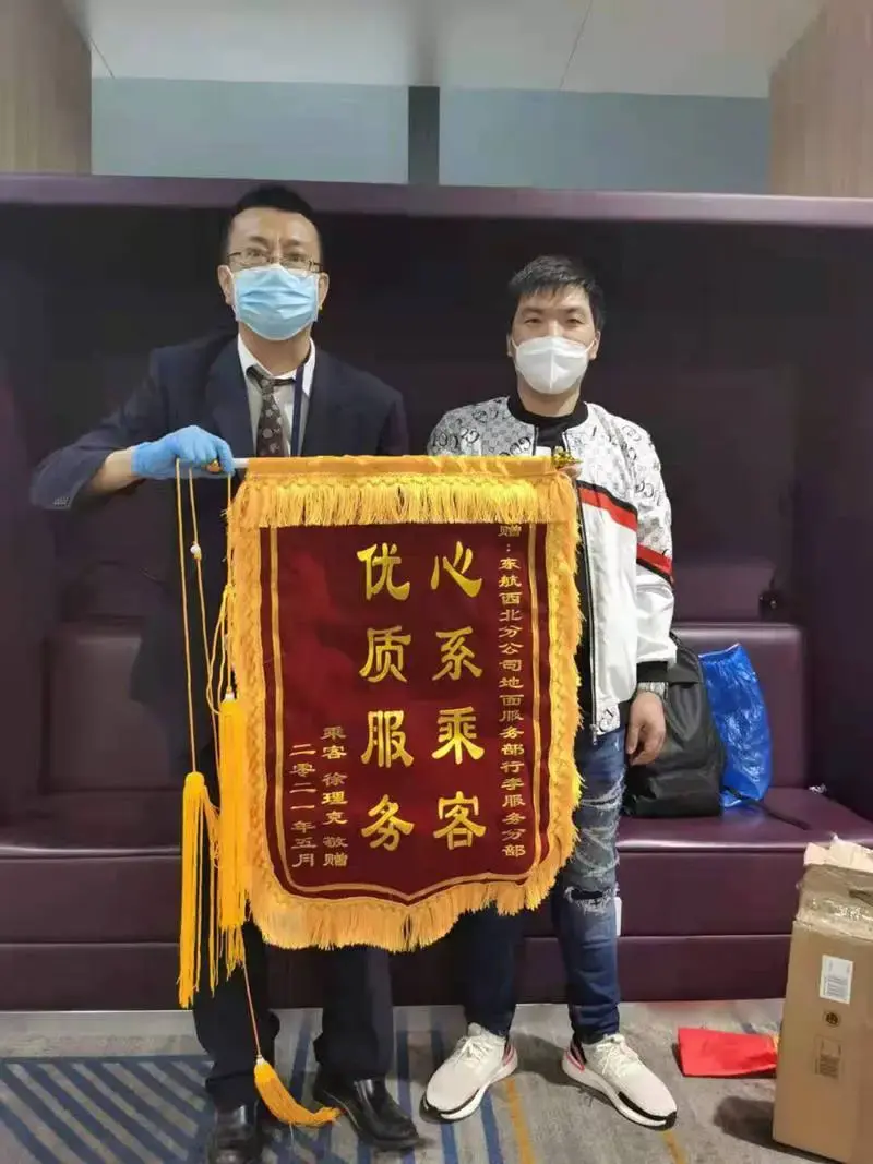 近日,东航西北分公司地面服务部行李服务分部收到了一份特殊的“礼物”,一面绣有“优质服务 心系乘客”字样的锦旗,这是旅客对行李服务部分部员工拾金不昧的高尚职业操守和贴心细致的服务表达的感激之情,也是对东航西北分公司地服部工作的一份认可和赞扬。
