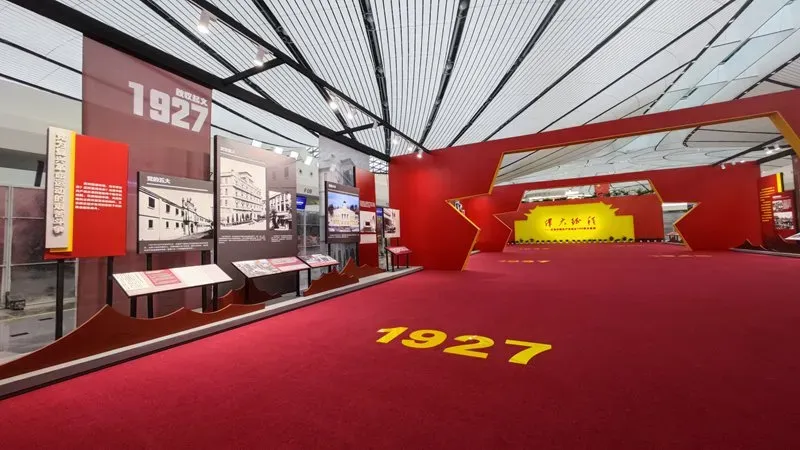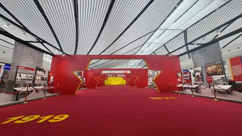 为庆祝中国共产党成立100周年,重温党的奋斗历程,呈现党的伟大征程,大兴机场与首都博物馆、上海市历史博物馆(上海革命历史博物馆)、河北博物馆、中共一大会址纪念馆、西柏坡纪念馆共同合作在航站楼内打造“伟大征程——庆祝中国共产党成立100周年特展”及“星火照耀”主题景观。6月18日,正式亮相航站楼与广大旅客见面。
