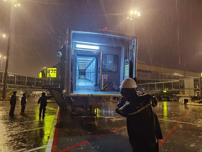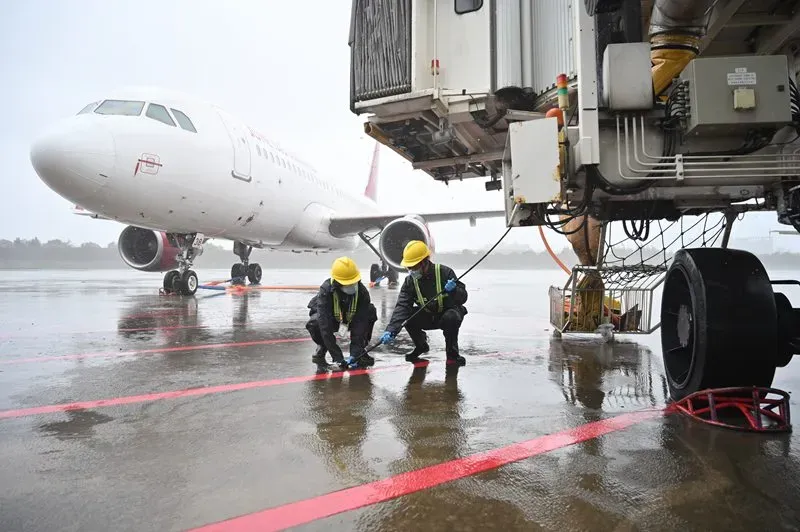 25日当天,两大机场会同航司及驻场单位,再次全面加强机坪航空器、露天设备设施固定措施,加强机坪FOD防控,排查疏通机坪区域内调节水池和排水设施,做好机场范围内积水易堵点的重点清理,组织应急抢险队伍,做好突发情况应急响应准备。排查围界空陆侧,对户外广告、玻璃幕墙、灯箱、空调外机、临建围挡及施工塔吊等设施做好进一步加固防风措施。针对易遭雷击、进水、频率干扰的运行设备提前进行巡视维护。同时对各类防汛设备和物资进行了全面检查,确保储备充足。