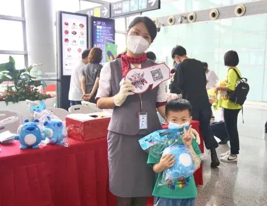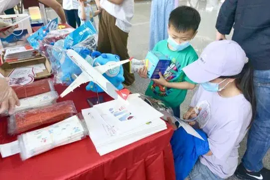 本次活动湖南航空以“‘粽’享童趣,鸿鹄‘湘’伴”为主题,由地面服务部在T2航站楼开设了趣味展台,并设置了互动环节,地服人员在现场邀请旅客在定制明信片上写下对湖南航空的建议或寄语,投入“鸿鹄信箱”中,即可获得湖南航空定制口罩或玩偶,小朋友们还可以在现场感受飞机模型带来的乐趣。